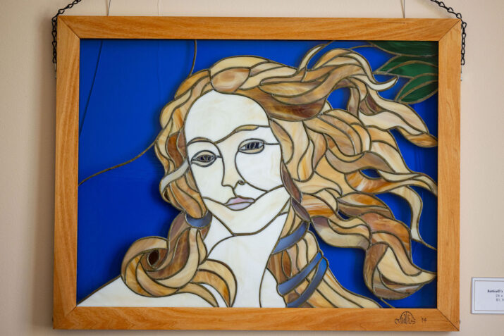 “Much of the inspiration for my larger panels comes from a desire to recreate the works of the Great Masters through the medium of stained glass. My process breaks down paintings into their essential forms and colors then translating those elements into glass designs. My work is inspired by the visionaries who broke the visual world apart from the rhythmic turbulence of Van Gogh’s Starry Night, to the classical grace of the Botticelli’s Birth of Venus, or the radical Cubist creations of Picasso and Emilio Pettoruti. Bridging a gap between fine art and stained glass. With these pieces, my goal is to see the icons of the past in a different light, honoring the traditions of the masters while celebrating a unique shifting brilliance that only stained glass can provide.”
